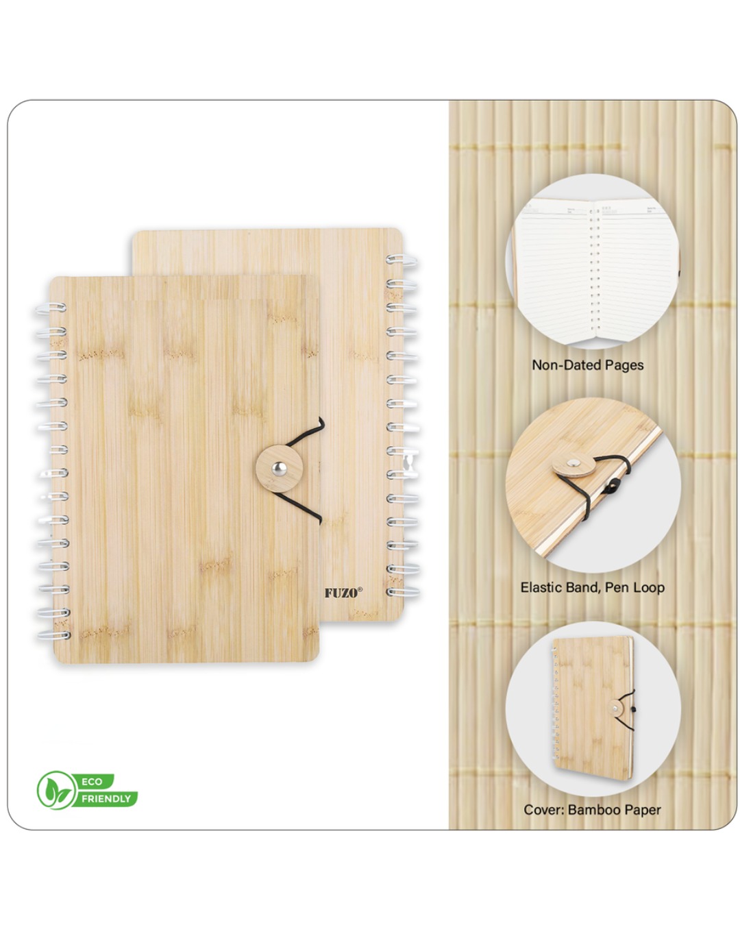 • Eco-friendly bamboo paper cover with a natural look