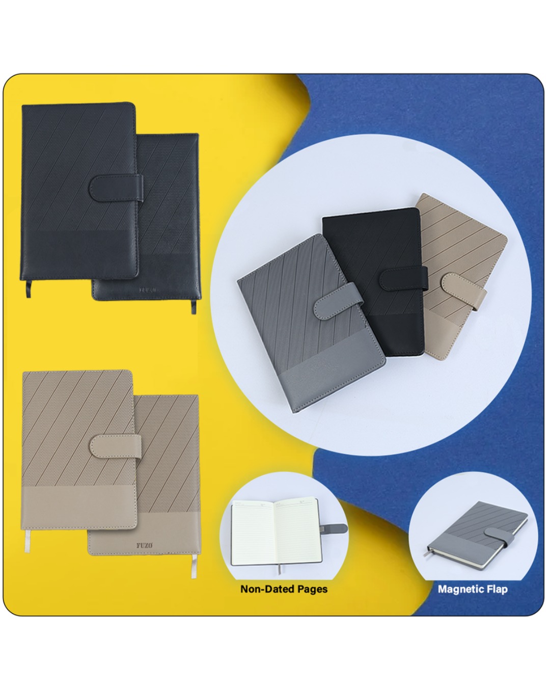 - Premium leatherette cover with secure magnetic flap