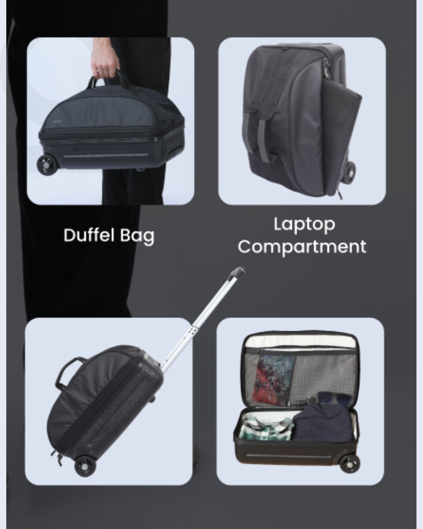 • Perfect for Smart Travel – A reliable blend of luggage and laptop bag for efficient mobility