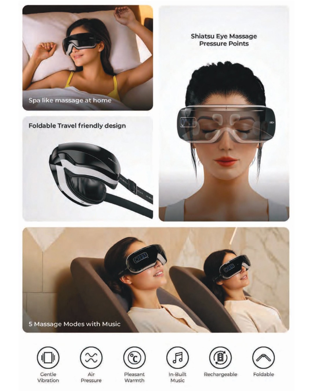• Heat compression, vibration & air pressure massage