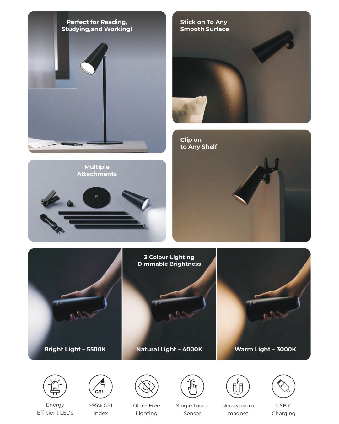 - Clip-On & Stick-On Options: Easily attach to desks, bookshelves, or walls for focused, versatile lighting.