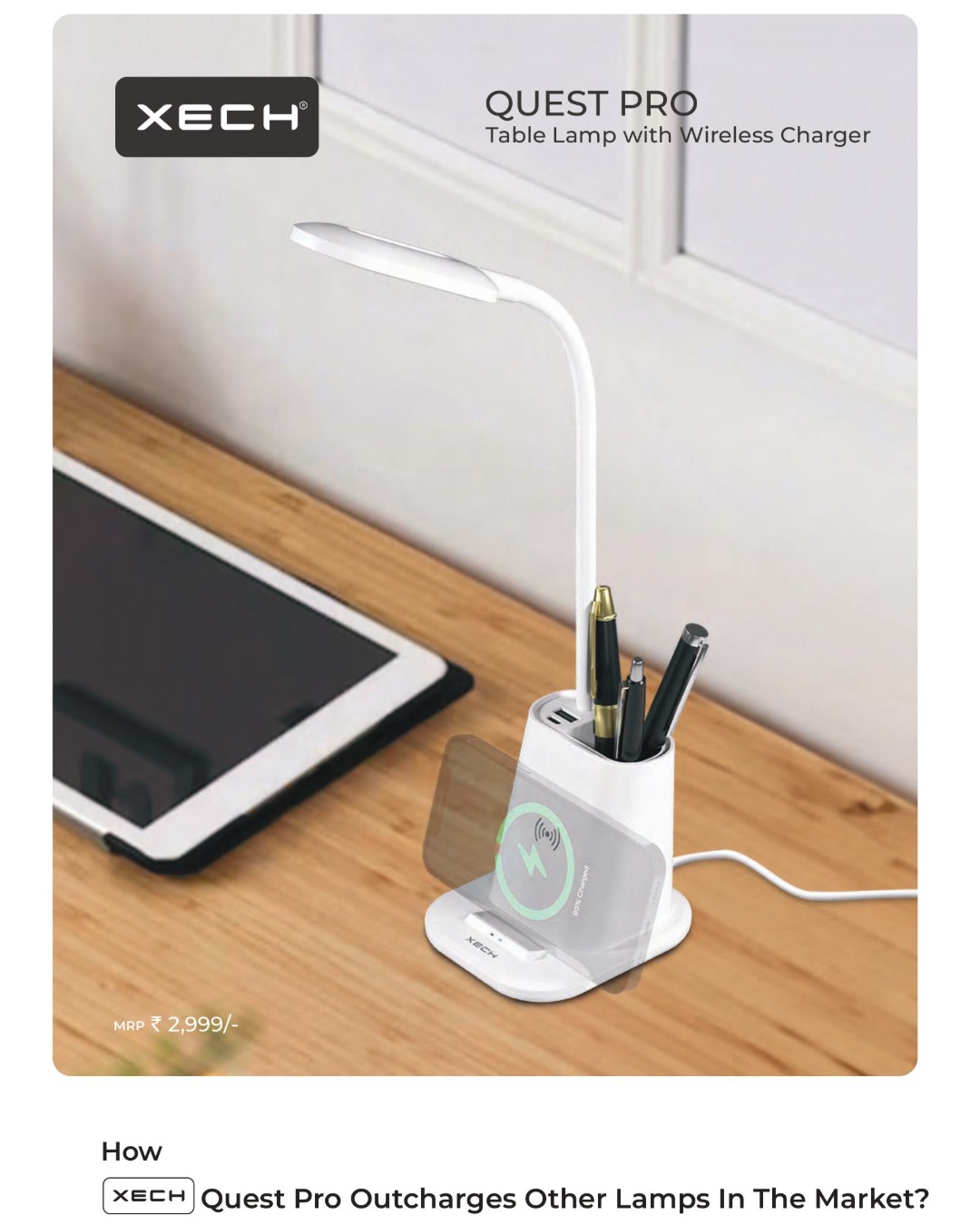 • All-in-one desk lamp with built-in wireless charging & organizer